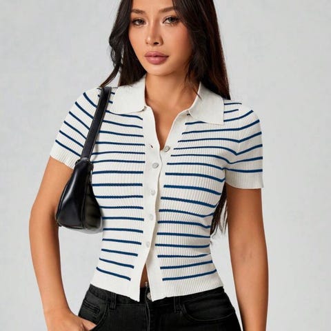 Poloskjorte i flerfarget design. Størrelse Poloskjorten har et klassisk stripemønster og er dekorert med et kirsebærmotiv. Passer til uformelle anledninger og gir et stilig preg til garderoben.