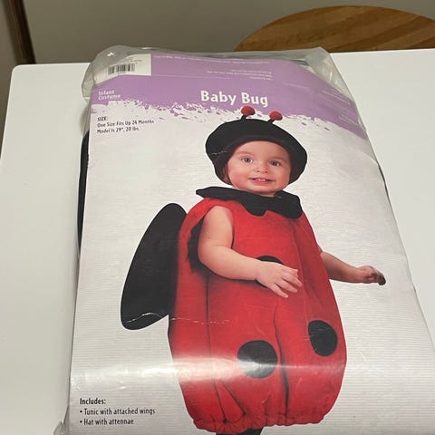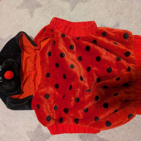 Søtt marihønekostyme i størrelse 74. Husker ikke hvor kostymet er kjøpt, men mins at det var en leketøysbutikk.