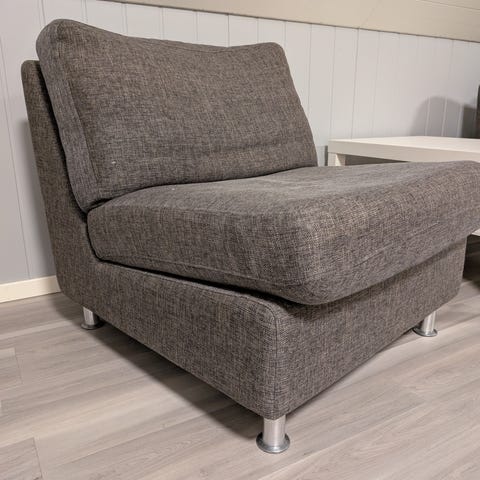 Dette er en solid hvilestol med gyngemekanisme og mulighet for å legge ryggen helt ned slik at man kan ligge. Perfekt for avslapning. Den er ganske tung på grunn av mekanismen for gynging og tilbakelening.