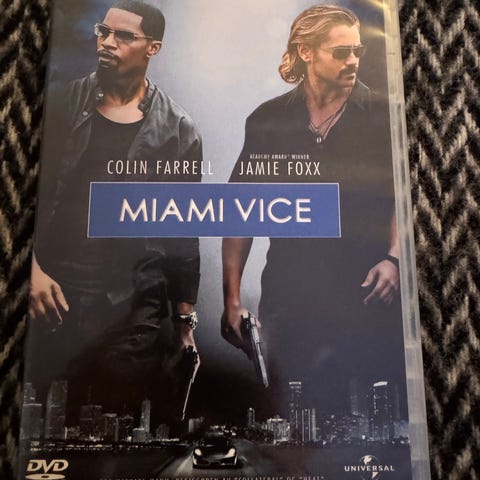 Miami Vice DVD Film med Colin Farrell og Jamie Foxx. En actionfylt film som følger to detektiver i Miami. DVD-formatet gir enkel avspilling i DVD-spillere.