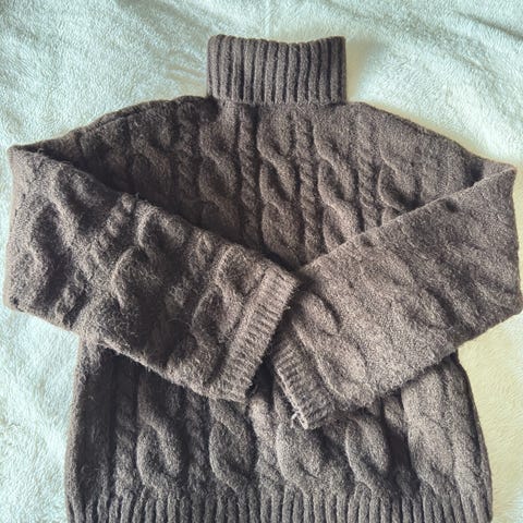 Høyhalset strikkegenser med splitt på sidene i strl M. Kun prøvd på