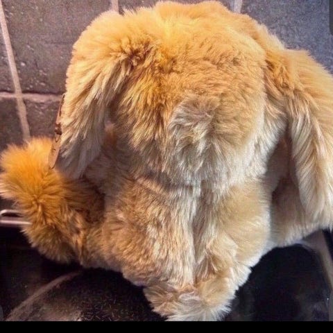 Tinka kaninbamse i blå plysj. Denne myke kaninen er laget av behagelig plysjmateriale, ideell for barn som ønsker en koselig kosebamse.
