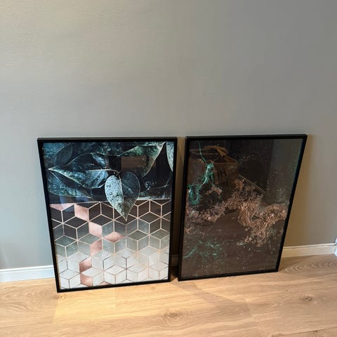 Posters/ Plakat Sett. Plakatene er innrammet 2 stk ( 1 ikke innrammet) og passer godt til moderne interiør. Perfekt for dekorasjon av stue, kontor eller soverom.