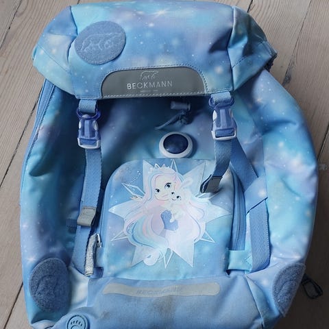 Litt brukt Backmann skolesekk i lilla farge. Sekken har et romslig hovedrom med snøring og flere lommer for organisering. Justerbare stropper gir komfort ved bæring. Passer perfekt for skolebruk. Den har kapasitet til 22 liter.