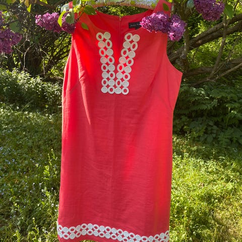 Rød Desigual kjole med lommer og glidelås bak. Veldig fin på! Tykt stoff.