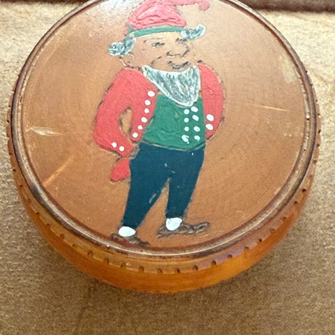 Gammel oppbevaringsboks blikkboks for skråtobakk tidlig 1900-tall