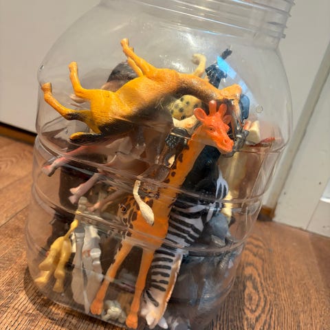 Pent brukt dyr selges samlet for 2000kr. Alt fra gårdsdyr, jugeldyr og m.m.