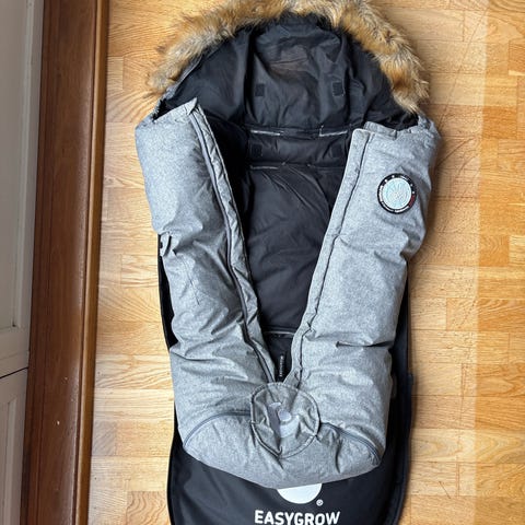 Easygrow vintervognpose , pent brukt , med mulighet for forlengelse av fotenden. En del av foret kan tas ut for å regulere varmen. En meget varm og god pose. Medfølgende carryboard er ubrukt.