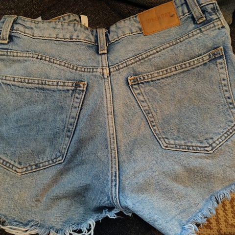 H&M Denim Shorts i størrelse 40. Disse shortsene er laget av denim og har en klassisk blå farge. Ny med lappen på