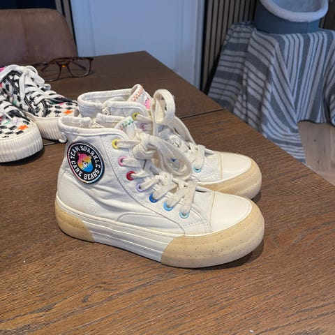 Pent brukte 2-3 ganger til 17.mai og en konfirmasjon. Ingen skader på skoen, men noe skitne i den hvite kanten rundt. Kan nok skrubbes vekk, men har ikke prøvd