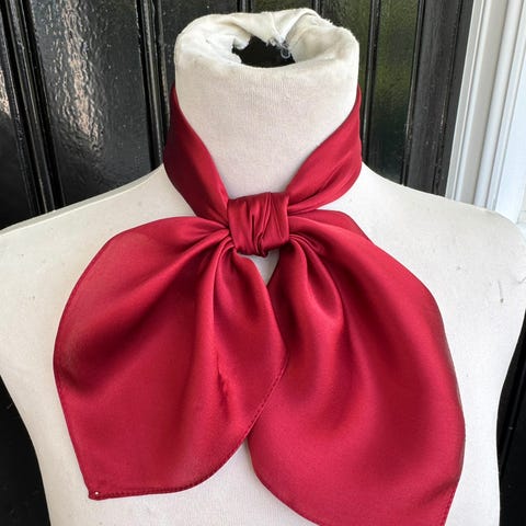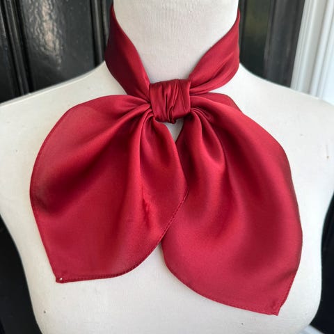 Silkeskjerf i flott kvalitet. Ordentlig rød farge. Størrelse 53x53cm.