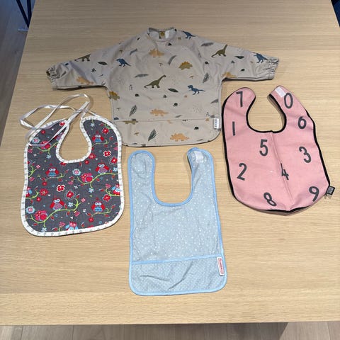 Søte og fine smekker. Noen til å kle på og noen mindre. Alle typene man trenger. Godt brukt som du kan se på bildene