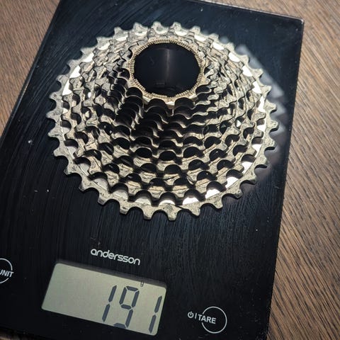Kasset med mange km igjen. Brukte helt nytt kjede rett før jeg tok det av for å dobbeltsjekke at ingen skal hoppe over. Brukt vokskjede.