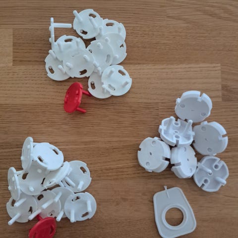 Kontaktbeskyttelse for stikkontakt, uåpnet pakke. Du får og med en praktisk barnesikker lås for skapdører.