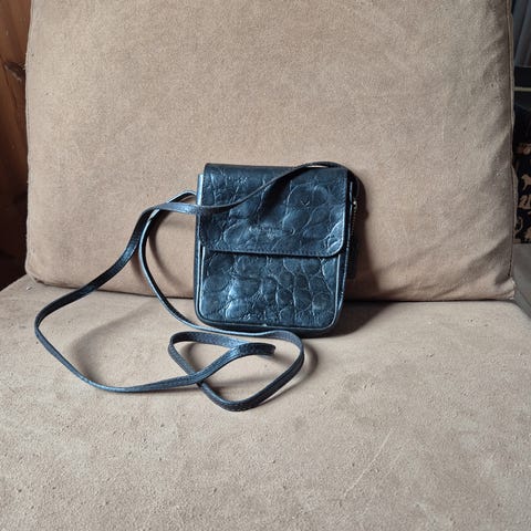 Myk tøff skulderveske, mange rom, skulder reimene litt slitt. Stilig veske