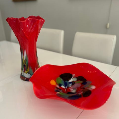 Nydelig eldre vase i rød bøhmisk krystall. Hel og fin.