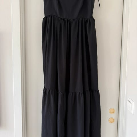 Et fyrverkeri av en kjole som er skikkelig dyrisk i vakker kombinasjon av gult og svart. Løs og ledig i snittet. For i skjørtet så den henger veldig fint. Kan brukes til hverdags og fest. Kan kneppes helt opp eller åpne knappen så kjolen blir litt løsere i snippen. Nypris 2500. Så her kan du gjøre et kupp.