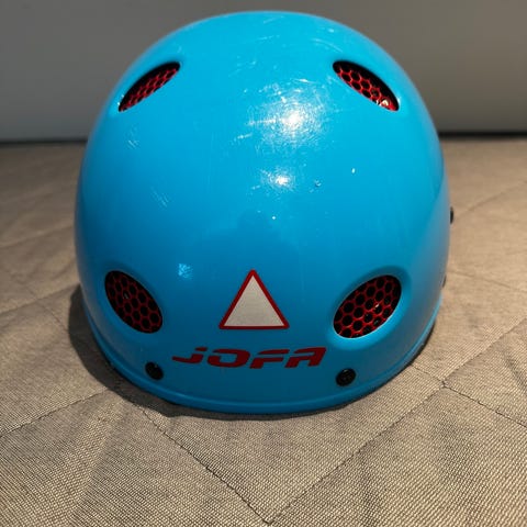Blå frost hjelm til barn i str.50-54 cm. Noen striper her og der og en liten bulk.