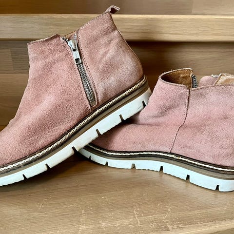 Selger et par nydelige blå sko i semske fra Bianco. Skoene har en komfortabel lav hæl og et tidløst design som passer perfekt til både hverdags og penere anledninger.