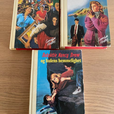 Gode bøker om Nancy Drew, noen mer slitne enn andre, men innholdet er godt bevart!