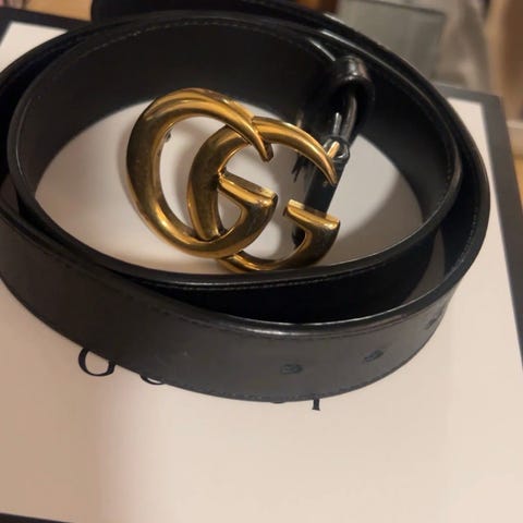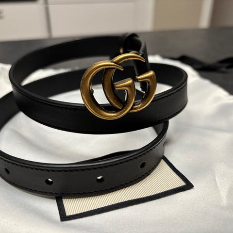 Lite brukt, ingen skader. Alle perler på. Størrelse 100 men kan justeres hos en skomaker/Gucci butikk.
