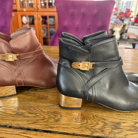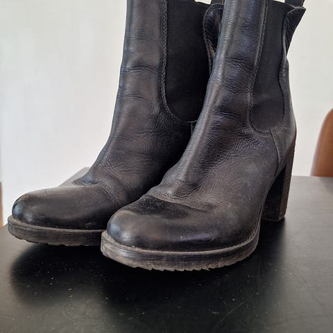 Semskede korte boots fra Italienske Strategia. Kjøpt på Bello Trondheim. Skoene er ikke brukt av meg, men ser ut som de har vært brukt på fotoshut, se sålen under. Knall fine boots.