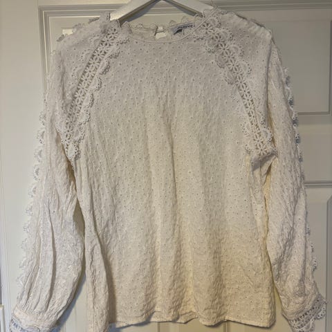Polkadot hvit bluse/ lett skjorte med svarte prikker - perfekt til kontoret