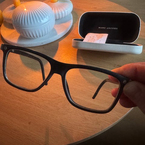 Veldig pent brukte Marc Jacobs lesebriller i mørk brun. Veldig behagelige briller, men selges da de ikke blir brukt. Brilleetui følger med.