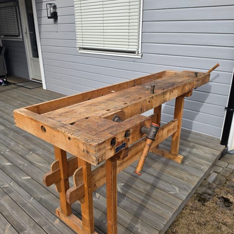 Pen og fin høvelbenk selges og hentes i Tvedestrand. Se bilder for mål: 138*60*82