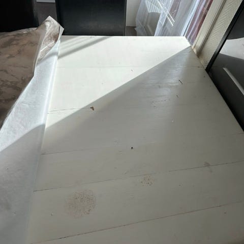 Godt og stødig bord. Pen plate uten særlige merker. Bena kan reguleres I høyden. Bordet er tungt.
