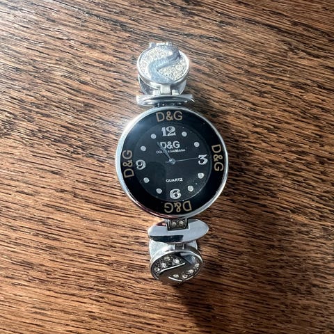 Denne klokken var en gave og er kun brukt 2 ganger. Den har stått pent i skapet i original boks siden jeg fikk den, ettersom den er et samleobjekt. Jeg ville sagt at den fremstår helt som ny, men i gjenskinnet på «lokket» vil du se et par overfladiske striper (ikke dype - kan pusses) - se bilder. Klokken er som et smykke og er skikkelig vakker! Original boks medfølger.