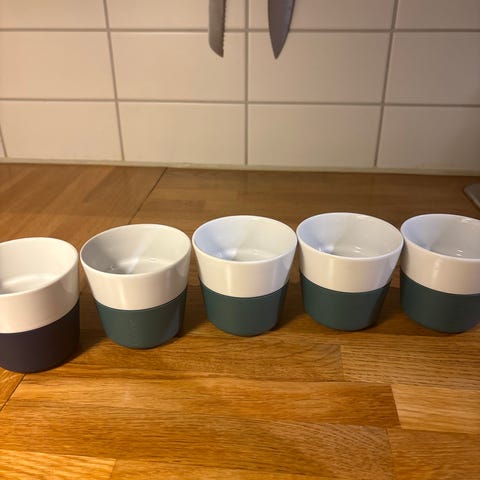 Selger fem stykker av Eva Solo Eva Trio Legio Nova kopp, i perfekt tilstand. Nypris 230kr per stykk, totalt 1150kr. Selges for 400kr samlet eller 100kr stykk.