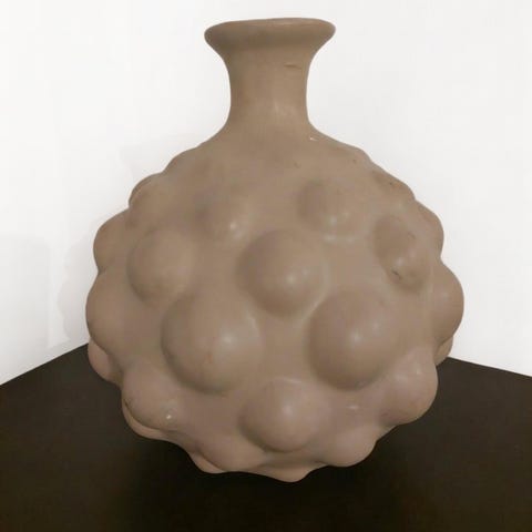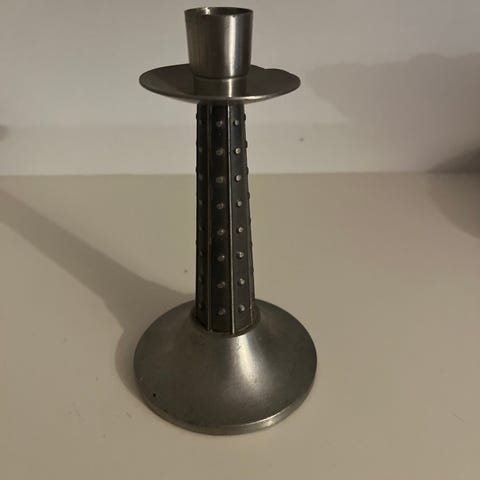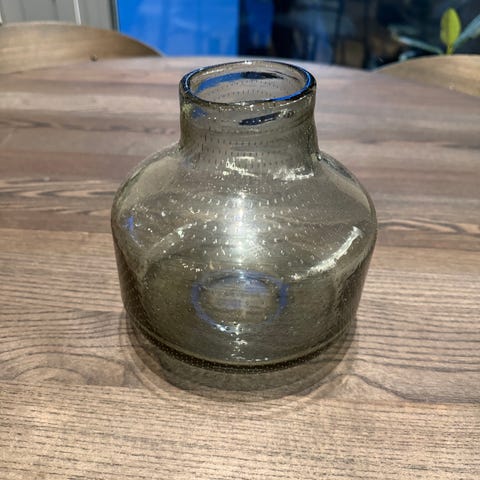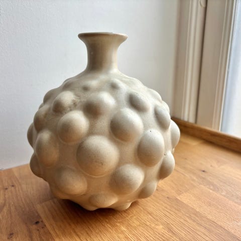Lys dus grønnbeige vase eller lysestake. Dekorativ også slik den er. H: ca 18 cm. Kjøpt på Kid interiør. Må hentes!
