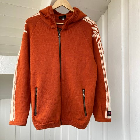 Nydelig strikk fra Husfliden, aldri brukt. Kun hengt i et skap. Nypris 3000,- Passer til dame M-L, evt mann S-M