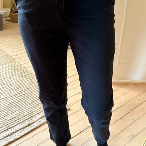 Denne buksen er nesten ikke brukt, den er rett og slett for stor. På bildene med belte er den litt snurpet sammen i livet og vises kanskje litt høyt oppe.