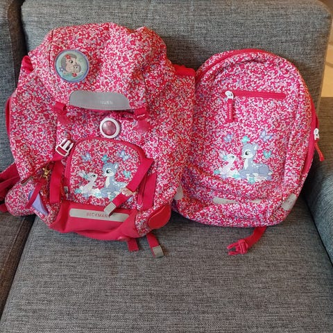 Skolesekk, gym-/tursekk og pennal selges til en ny eier. Pennalet har 3lag og ikke 2 slik som selges i pakkeprisen på Norli.