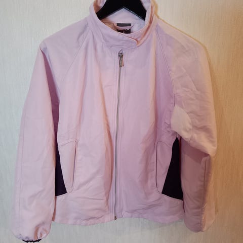 SATS treningsjakke svart. Hvit langsgående stripe på begge ermer. Glidelås, som kan dras helt opp. 70-talls stil. SATS logo. Se bilde 1