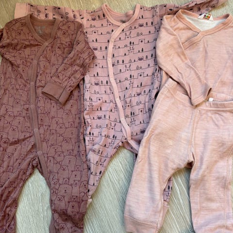 Pysj med føtter og ugle motiv. Kjempe søt og myk pysj. Nydelig farge. Pent brukt. Fra Pippi str 62
