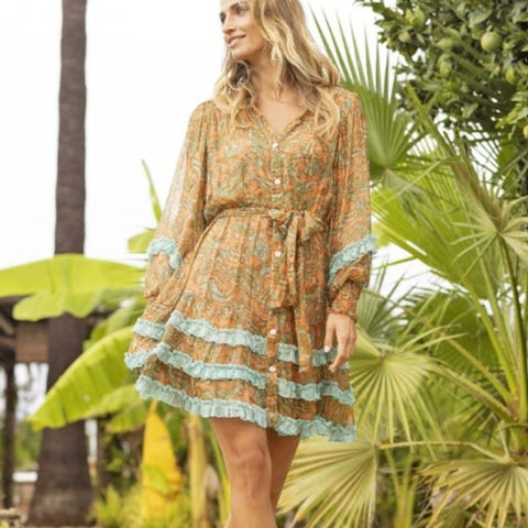 Miss June Paris helt nydelig boho floral bluse \ skjorte med flott blå blomster mønster og blonde flotte detaljer i str one size passer en i str S\M i fargen Hvit \ Blå Bra kvalitet og meget flotte detaljer .Blusen har et veldig pent fall og meget flott passform .Selges billig . Som Ny .Pris 700 ,- Ny Pris var 2300 ,- Den er inspirert av Ulla Johnson , Spell & the gypsy Bytimo , Love lolita , By Malina 😊