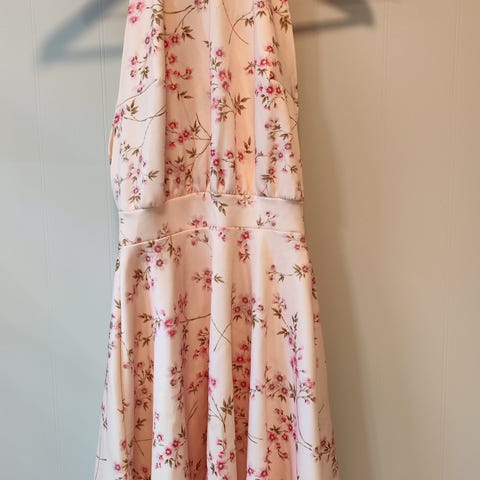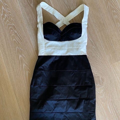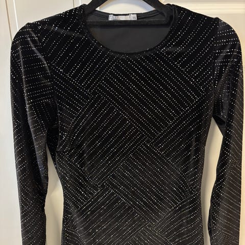 God elastisk kvalitet så den sitter perfekt på kroppen. Glidelås i ryggen, splitt nederst, vatterte bryster og bøyler i utringningen.