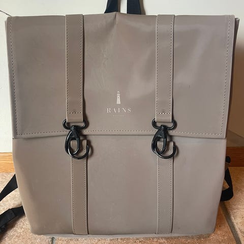 Selger en fin grå ryggsekk fra Rains