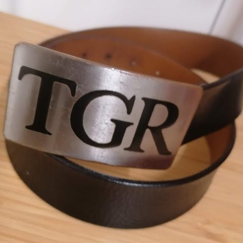 Et flott belte med en spennende spenne i metal . Italiensk skinn. Lengde 105.