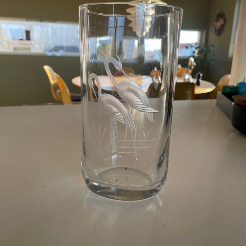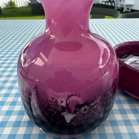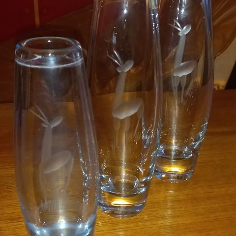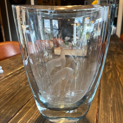 Retro krystallvase fra Randsfjord Glassverk, slipt eller etset mønster.