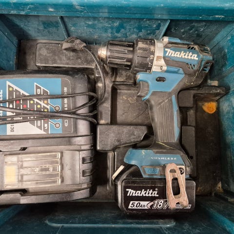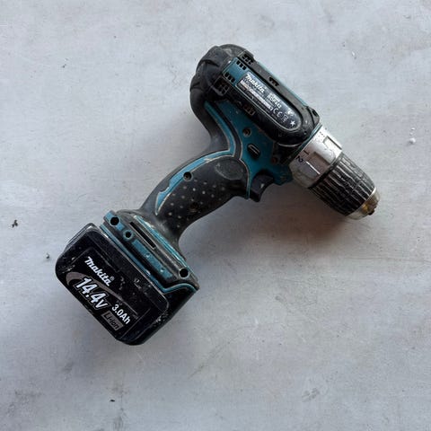 Lett og hendig Makita 18V drill uten rotor/armatur selges som delemaskin. Viklingene på den gamle rotoren brant opp pga den ble kjørt lenge uten stopp, så den er tatt ut og kasta. Må ha ny rotor så funker den som den skal. Rengjort og blåst for støv. Denne modellen er produsert i Japan.