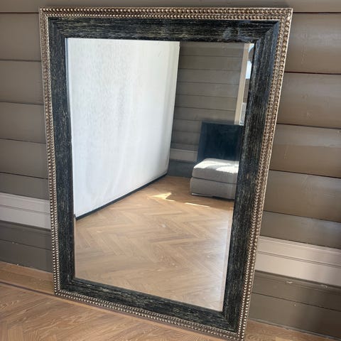 Vi så speilet på et hotell og fikk absolutt lyst på å ha det hjemme. Vi fant det og kjøpt på en interiørbutikk på Frogner, Oslo i 2012. Selges pga. flytting. Speilet er i fin stand, kun et ørlite merke som er usynlig mens speilet er på vegg (se bilde), selges derfor billig. Speilet må hentes på Vøyenenga. Pris er ferdig prutet.