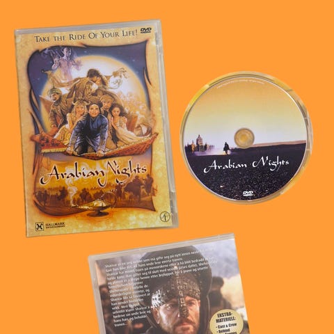 Arabian Nights DVD Film. Eventyrfilm basert på klassiske historier fra Tusen og én natt. Inneholder flere episoder med spennende fortellinger og eventyr.