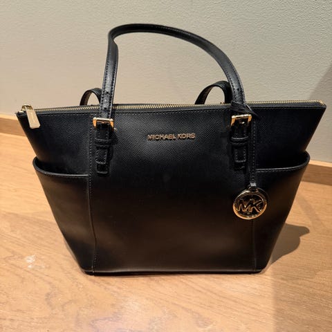 michael kors svart sort lær skinn cross skulderveske dame