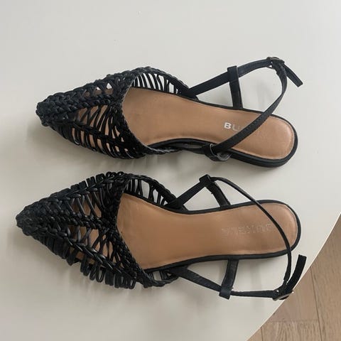 En vakker svart sandal, designet for kvinner. Laget av 100 % skinn, med såle og hæl i skinn. Disse sandalene er perfekte for enhver anledning. Sandalene er kun brukt én gang.