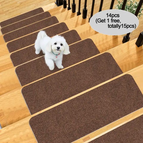 Disse mattene er laget av sterkt stoff med sisal-utseende slik at de er lyddempende, sklisikre, varme og komfortable. Trappeteppene kan vaskes og har en kant for å beskytte både trappetrinnsflaten og fremre kant. Den klebende teipen på baksiden gjør at mattene kan festes raskt og enkelt til trappen.
