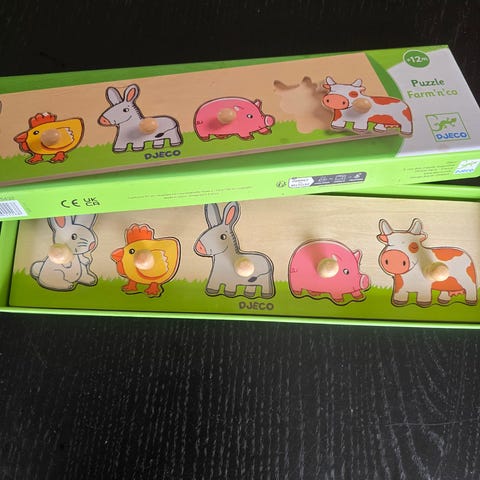 Oppmuntre utvikling av motoriske ferdigheter med Farm Wooden Puzzle fra Djeco, det franske leketøysmerket som er kjent for fargerike, moderne og pedagogiske leker.